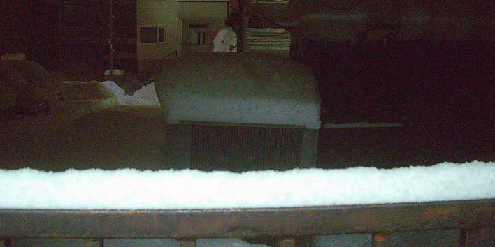 朝3時30分起床。湿雪が15センチくらい積もっていて、しんしんと降っている。