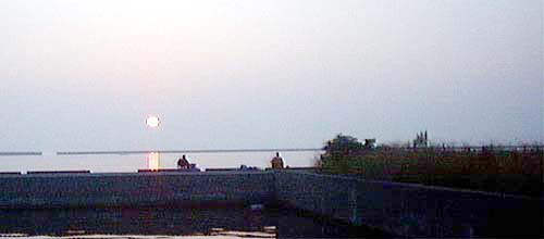 | 上の写真は着いてすぐ、午後7時頃。 平日にしては混んでいる。外海は、うねりはないが、少し波があった。潮の流れはいつもの通り結構速い。 |