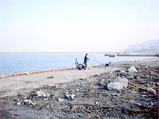 ←勝納埠頭右端の今回の我釣り座