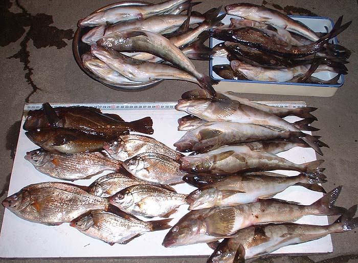 ガヤ2匹 タナゴ8匹 チカ大2匹(小樽第一埠頭にて) 30センチ近くのガヤが釣れた。奥が釣った。ホッケも40センチ近いのは初めて釣った。 去年と同じく大きいタナゴも釣れた。 |