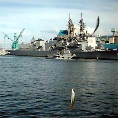 イージス艦の見物人で賑わっていた第一埠頭だが、これがいってしまうと、カタクチやチカが釣れるのにあまり釣り人はいない。艦を見に来た人の話では、カタクチは釣って帰ってもあまり喜ばれないのだそうだ。調理が少し面倒なのと鮮度維持に気をつかわなければならないのが理由なのだろうか。こんな美味しい魚をもったいないことだ。