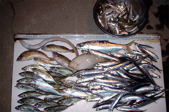 カレイ1匹 ニシン1匹 キュウリ1匹 アブラコ3匹 アジ22匹 カタクチ60匹 チカ90匹 チカは天ぷらサイズ、ハモは北海道にしては小振りの40センチ位、大きいニシンは予想外、アジは10センチオーバー、カタクチは今まで釣った中で最大級。 |