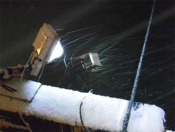上左の写真は今まで使っていたLED集魚灯。明るいが500Wの発電機にはかなわない。