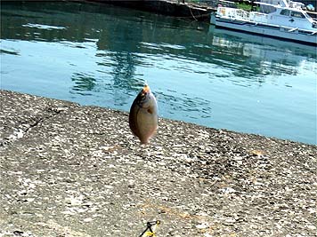 チカは海面に見えるがやはり釣れない。奥がやっと1匹釣った。タナゴは2匹釣った。自分は何も釣れなかった。