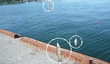チカ専門に狙うのなら、水深は浅いので、手返しのよい3.6〜4.5メートルの延べ竿が便利だ。2号素針仕掛けまたは、ウイリー仕掛けで網をこすりつけて釣るとよく釣れる。