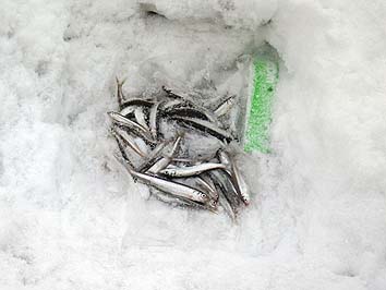 写真はないが、明るいときにマイワシが釣れた。チカの引きとは違う竿が大きく引き込まれるあたりがあって、釣れた魚はニシンかと思ったが、マイワシだった。これはうれしかった。