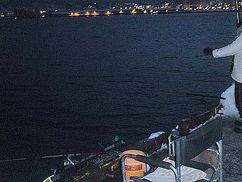 暗くなって少し冷え込んできた。豆炭ストーブをつけようかとも思ったが、1度つけるとなかなか帰れない。あまり魚が釣れないので早く切り上げる気にもなっていたので、今回も豆炭は使わなかった。