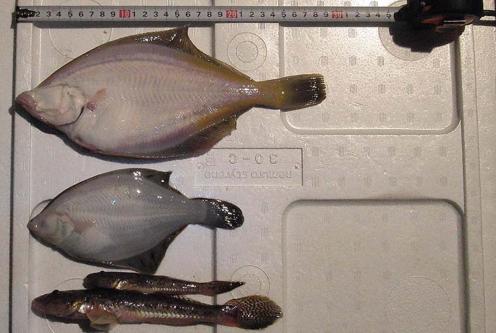 マガレイ1匹、クロガシラ1匹、ハゼ2匹