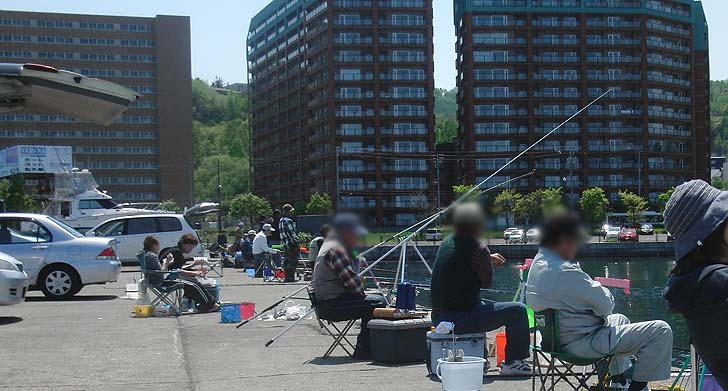 南防波堤、昼間は余り混んでいないようだ。夕方暗くなるとヤリイカ狙いの人で、駐車場所がなくなるくらい混んでいるらしいが…。