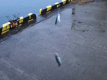 場所は去年から釣ることができるようになった基部角の右側、初めての場所なので深さがわからないし、根掛かりが心配だったが、ほかの場所と同じで、岸壁に着いた海草に注意すれば根掛かりはほとんどない。