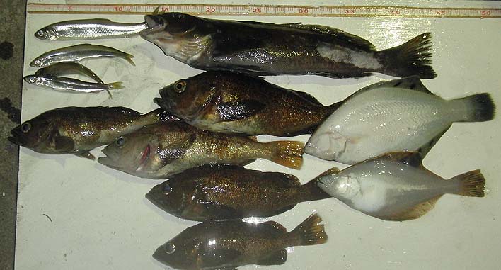 カレイ2匹、チカ4匹、ガヤ5匹、アブラコ1匹