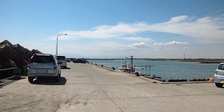 東港の船溜まりを出て、少し遠回りをしたが、周分埠頭フェリーターミナルに着いた。小樽のフェリーターミナルと比べるとこじんまりした建物だ。船が着く右側のほうに釣り場がある。