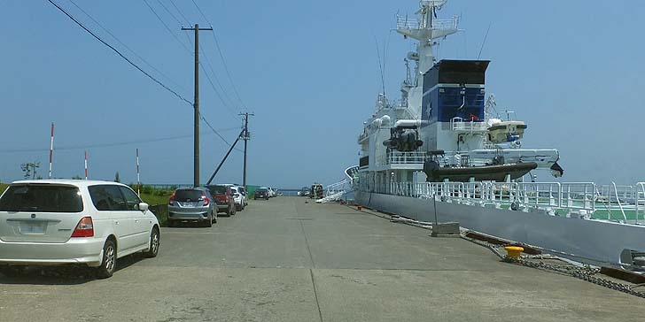 巡視船が停まっている側はあまり釣り人はいない、沖側にはかなり釣り人がいるが、先端のフェンスの左側は十分釣る余裕がある。