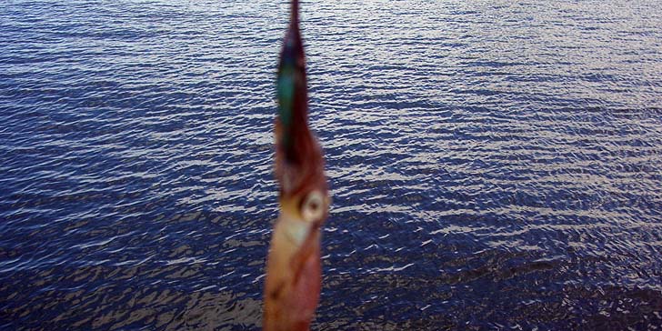 前回も1時頃からはスッテ仕掛を出していたが、4時14分までイカはかからなかった。今回は、12時過ぎに最初のマメイカが釣れたのだ。