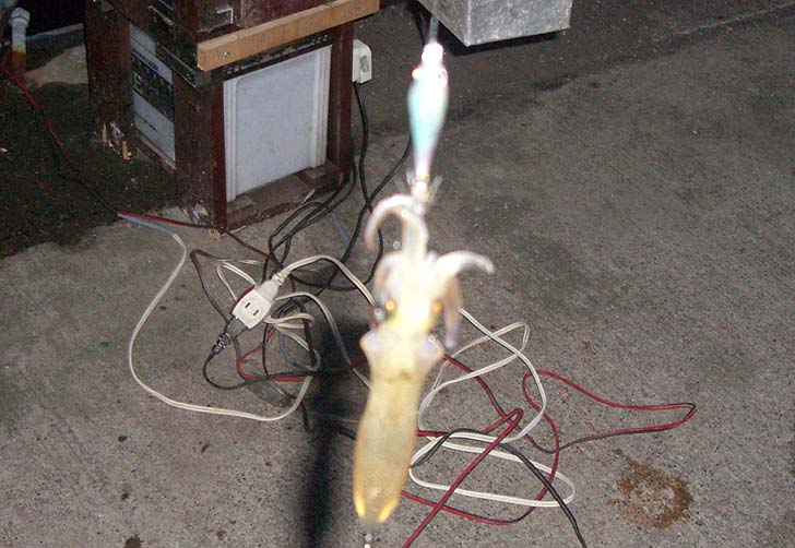 シャクリ器では1パイも釣れなかった。何とか6パイのマメイカを釣ることができたが、左側で自動シャクリ器で釣っていた方は、ヤリイカ、マメイカをたくさん釣っていた。
