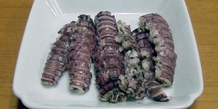 帰ってすぐ茹で、奥と3匹づつ食べた。自分は1分で完食した。