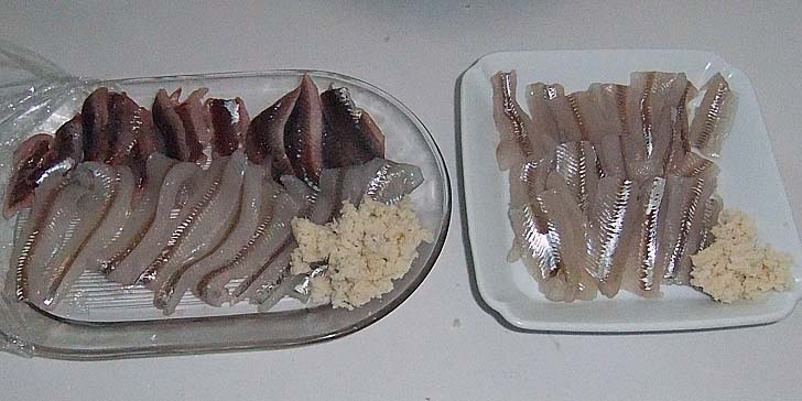 チカ、イワシの刺身(ヤマワサビ添え)