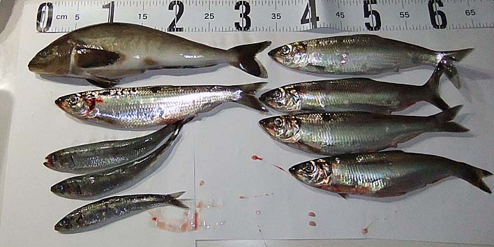 ニシン5匹、ホッケ1匹、マイワシ3匹(掬い)